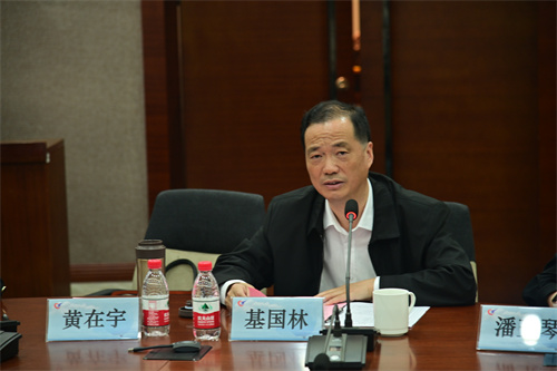 常州工程职业技术学院党委副书记、校长基国林致欢迎辞。基国林在致辞中对参会的各位领导和同仁表示热烈欢迎和衷心感谢,并介绍了学校的基本情况和近年来学校后勤工作成效。